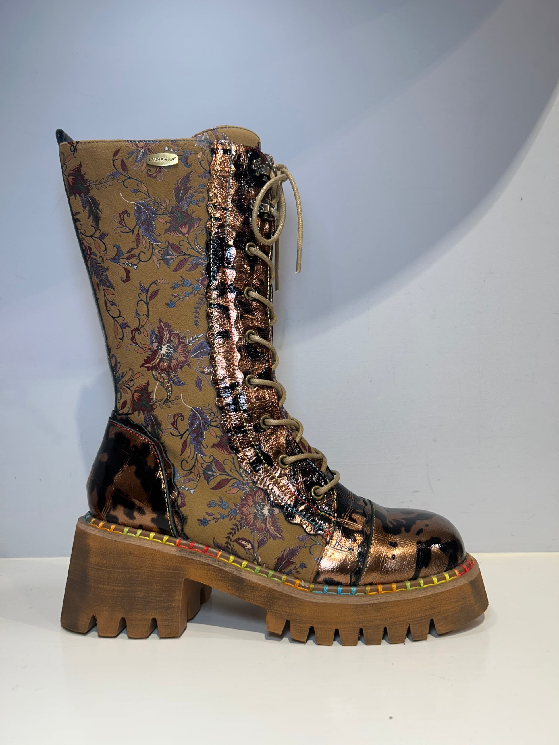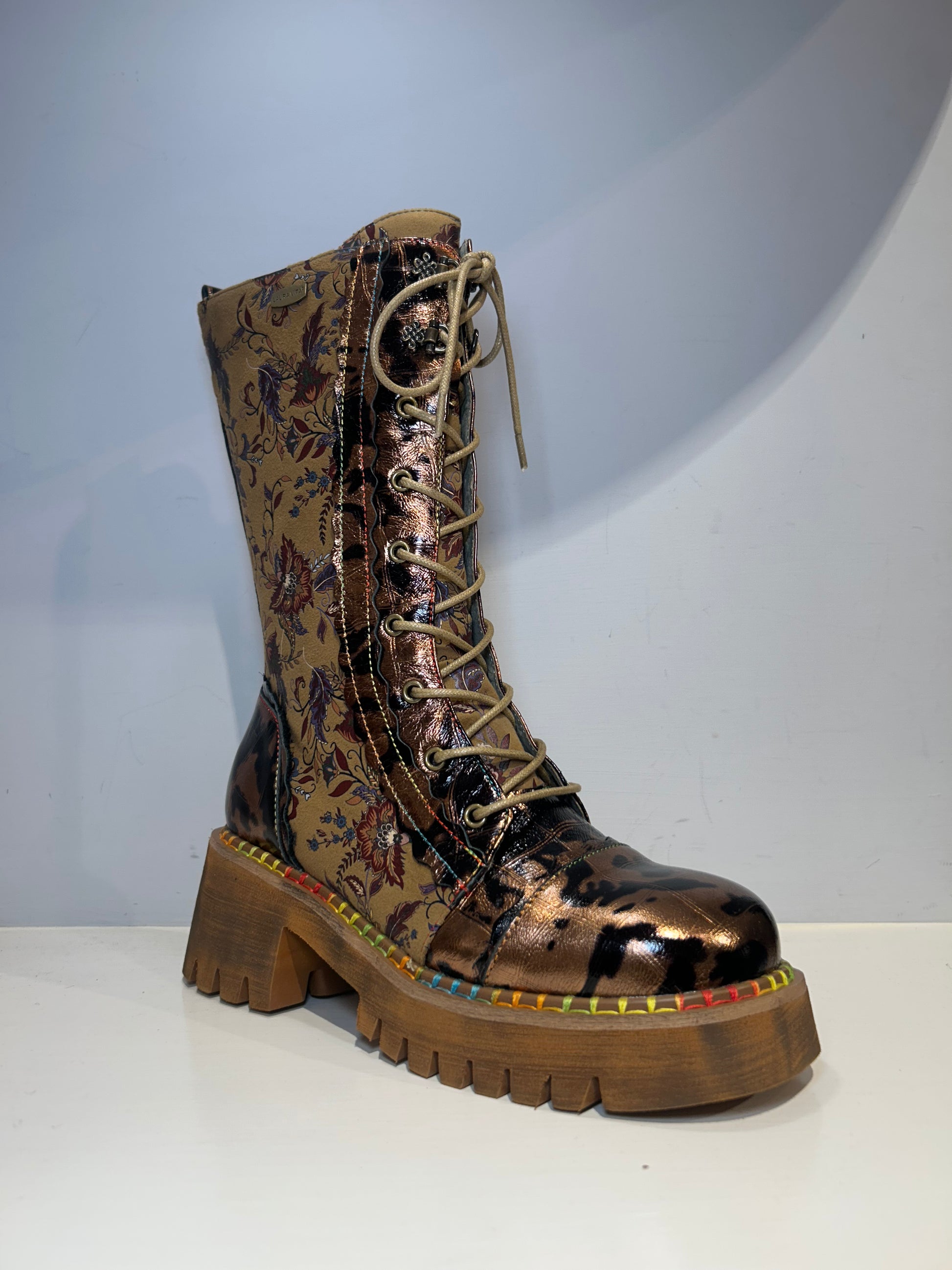 Anfibio alto di Laura Vita con lacci e zip interna color Bronzo