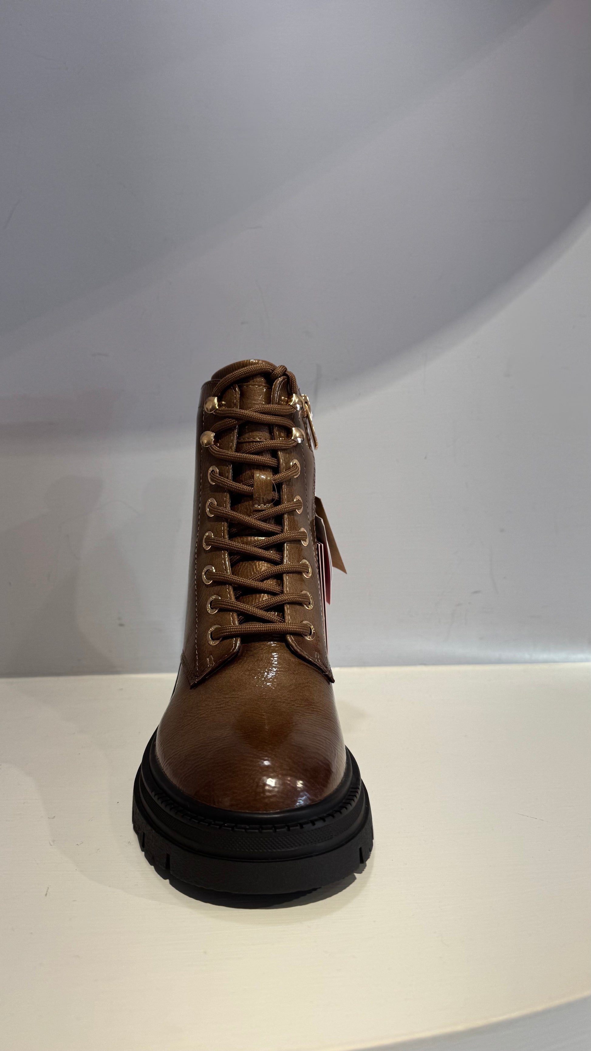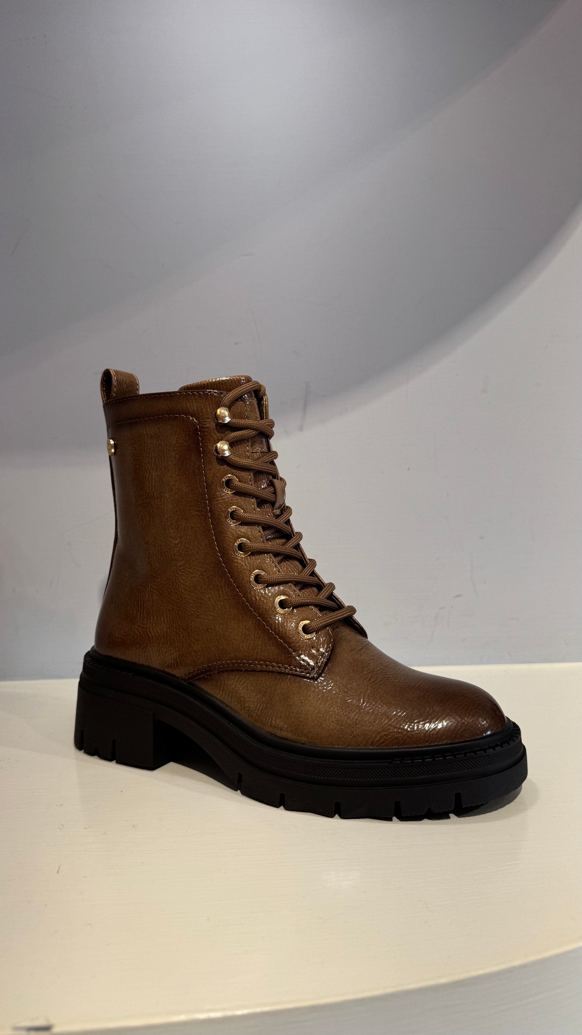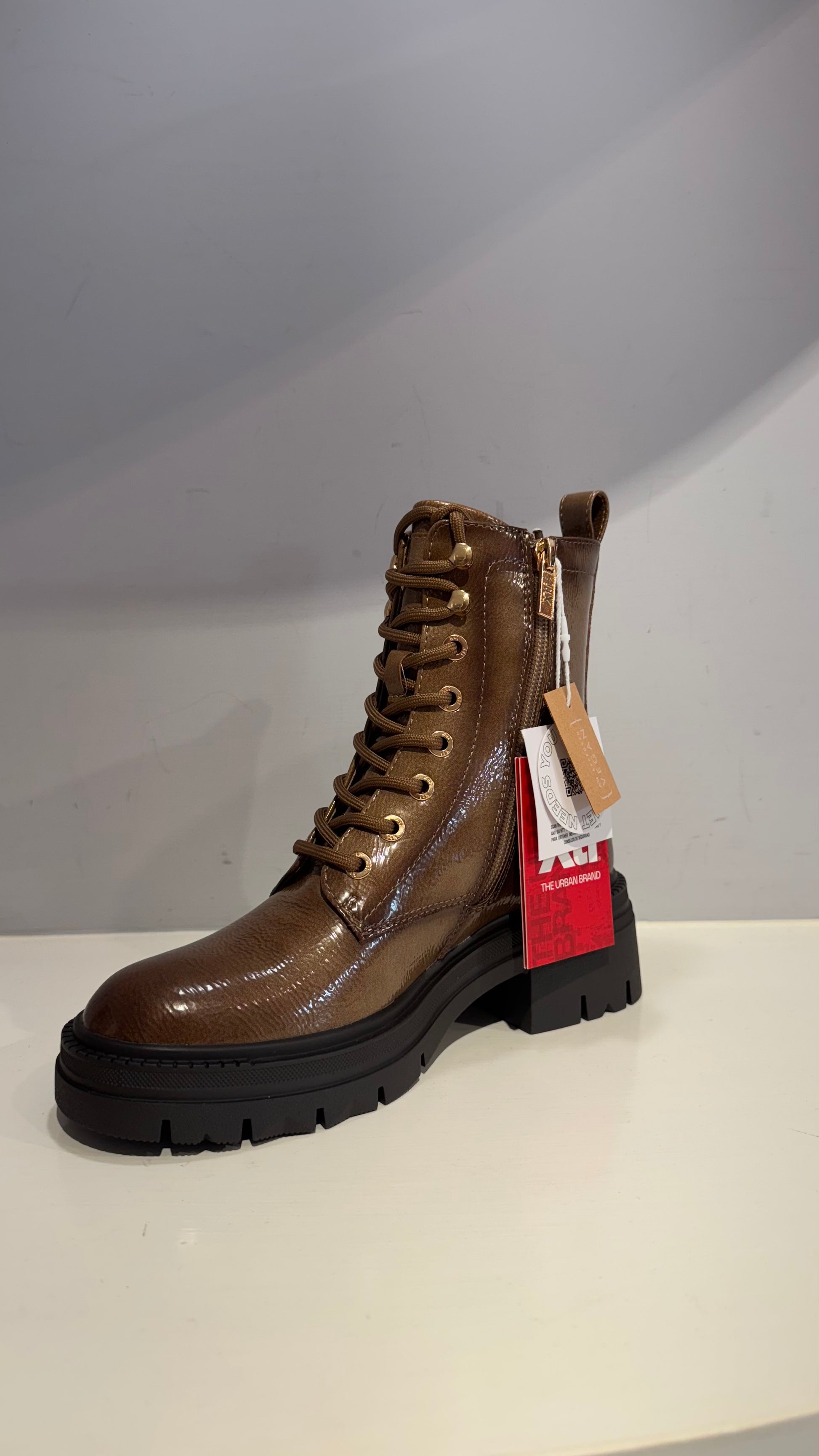 Anfibio con lacci e zip laterale in similpelle lucida color beige