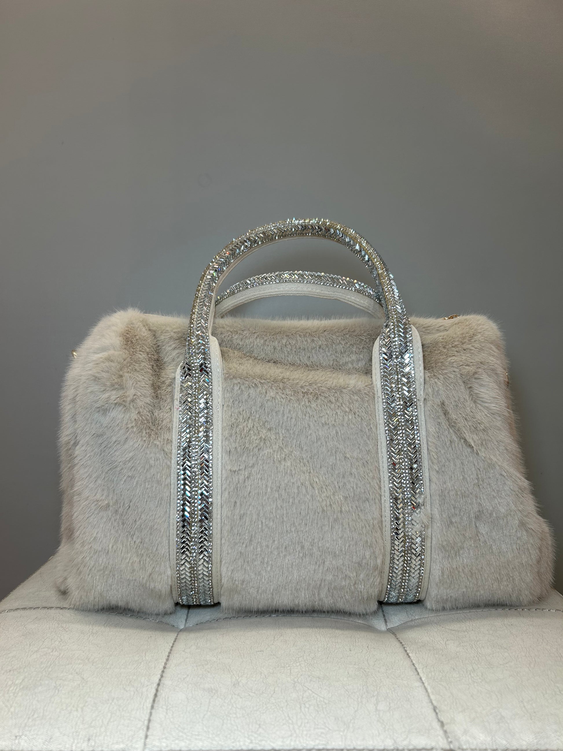 Bauletto color Avorio, versione LARGE con pelo liscio e strass.