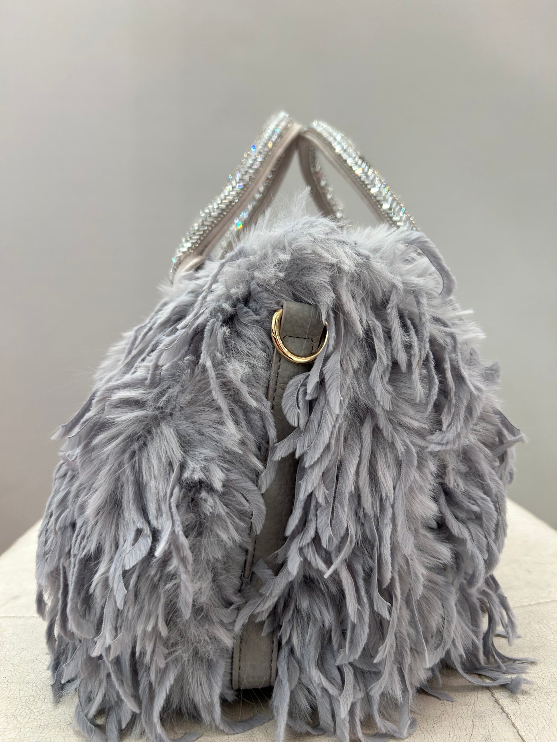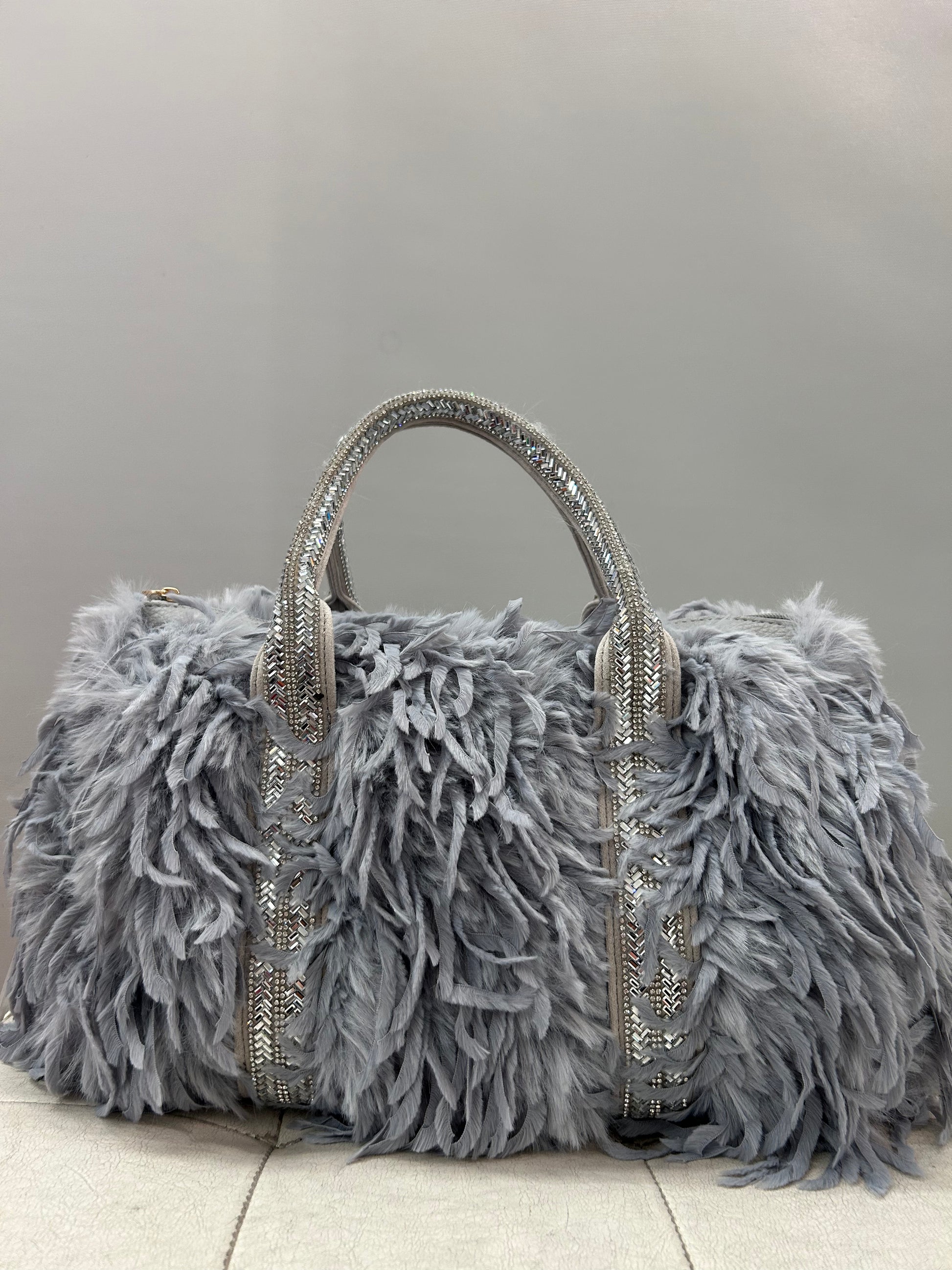 Bauletto color Celeste con Pelo e Strass, Versione MEDIUM.