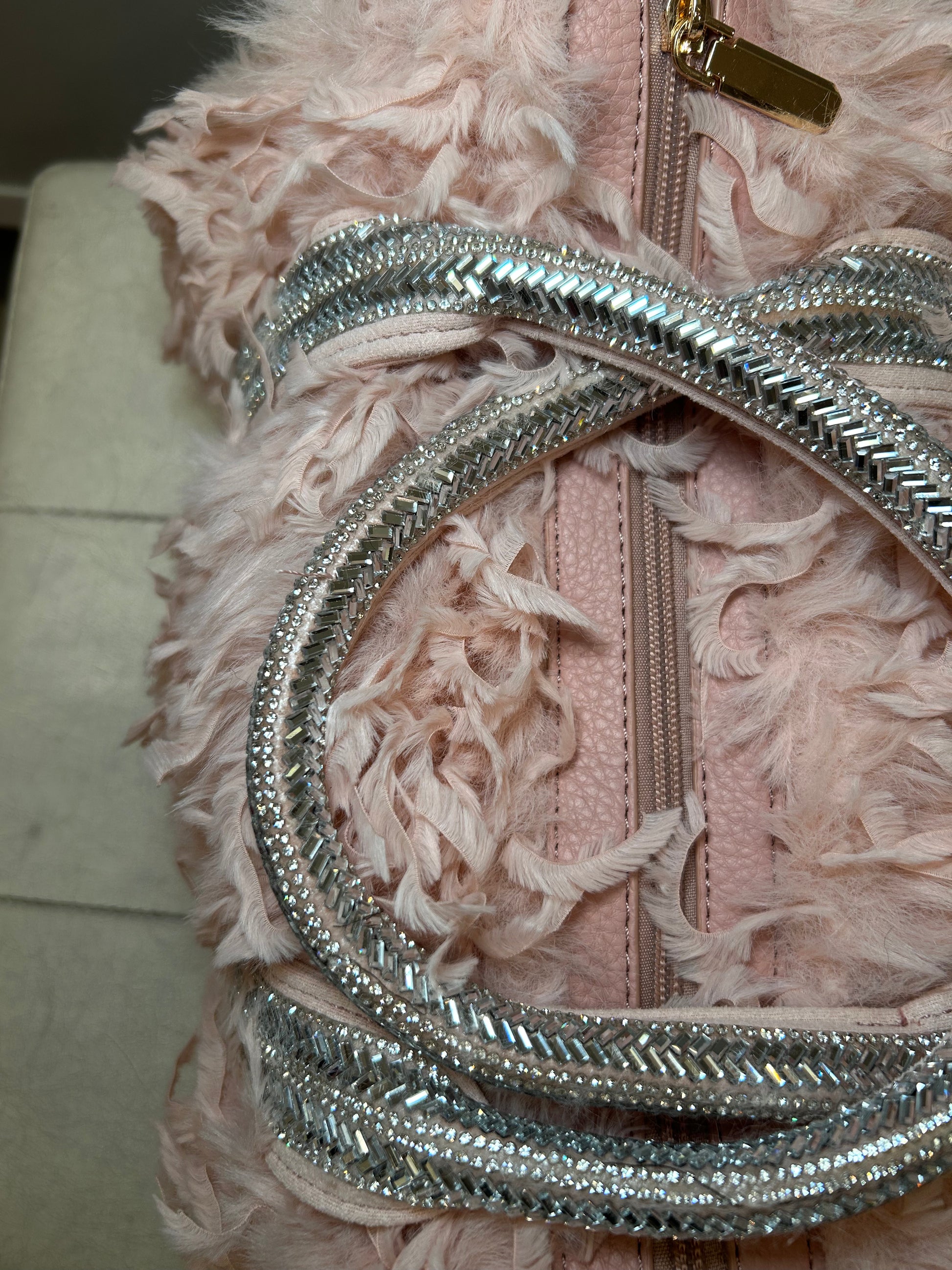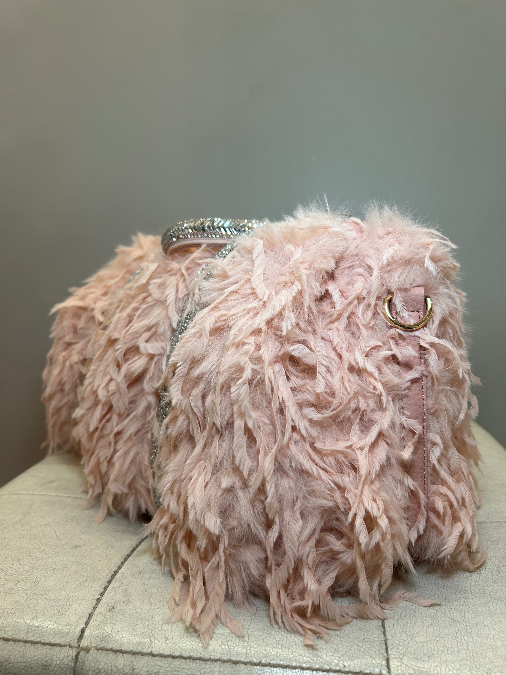 Bauletto color Rosa con Pelo e Strass, Versione MEDIUM.