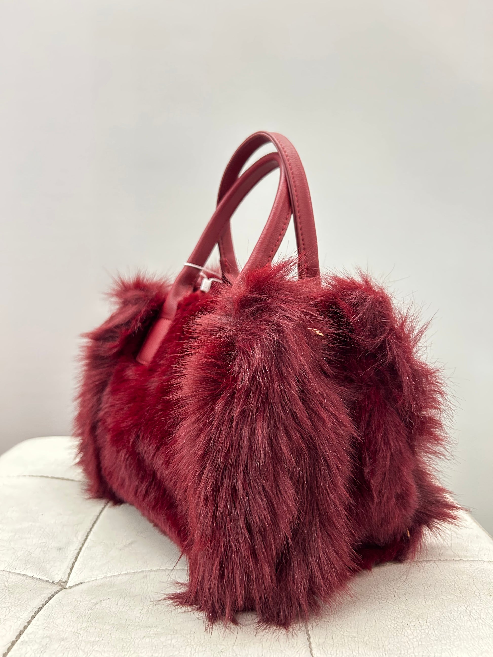 Borsa a mano color Bordeaux con pelo, versione SMALL.