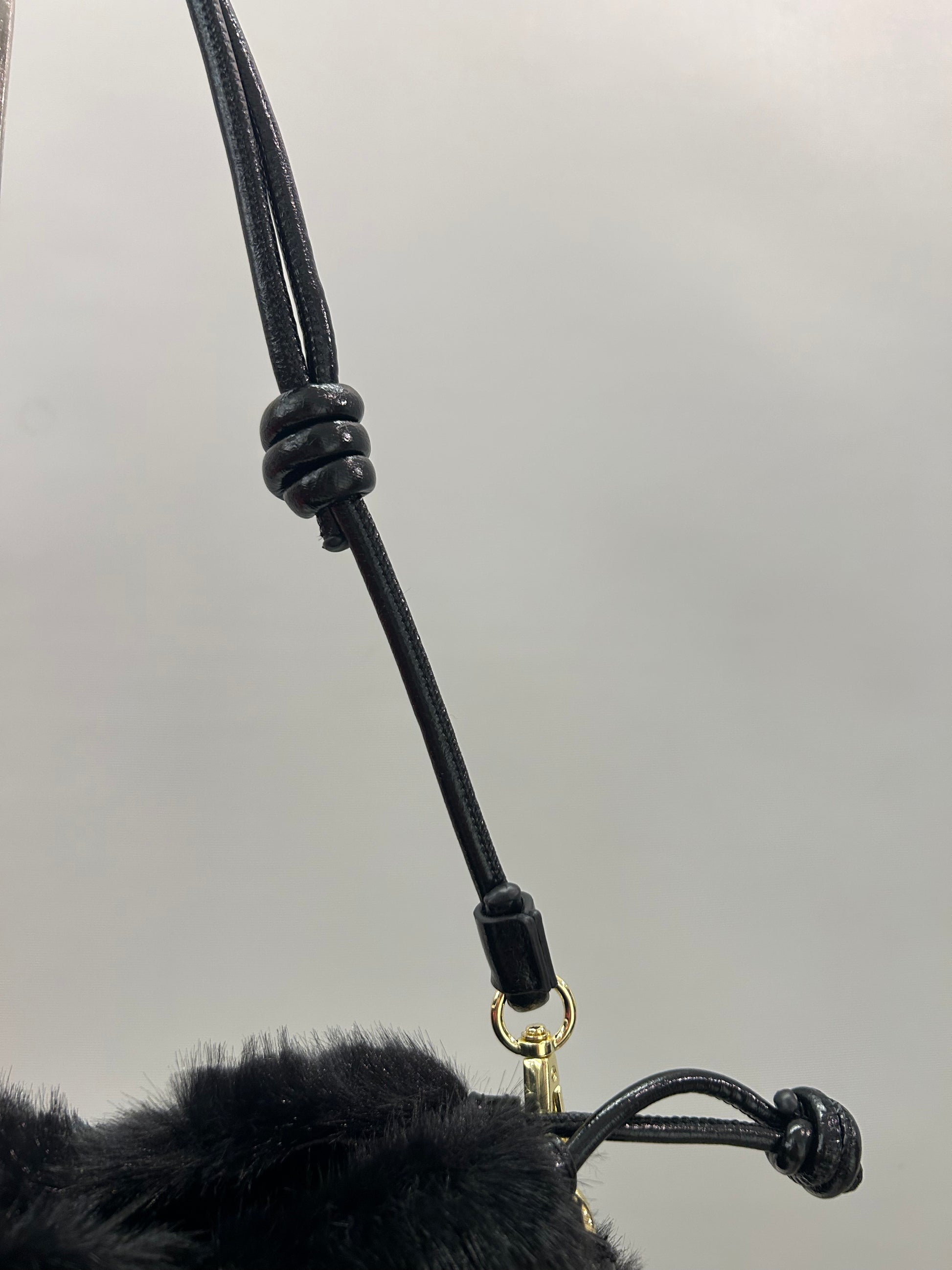Borsa a spalla color Nero con pelo e dettaglio nodi sulla tracolla
