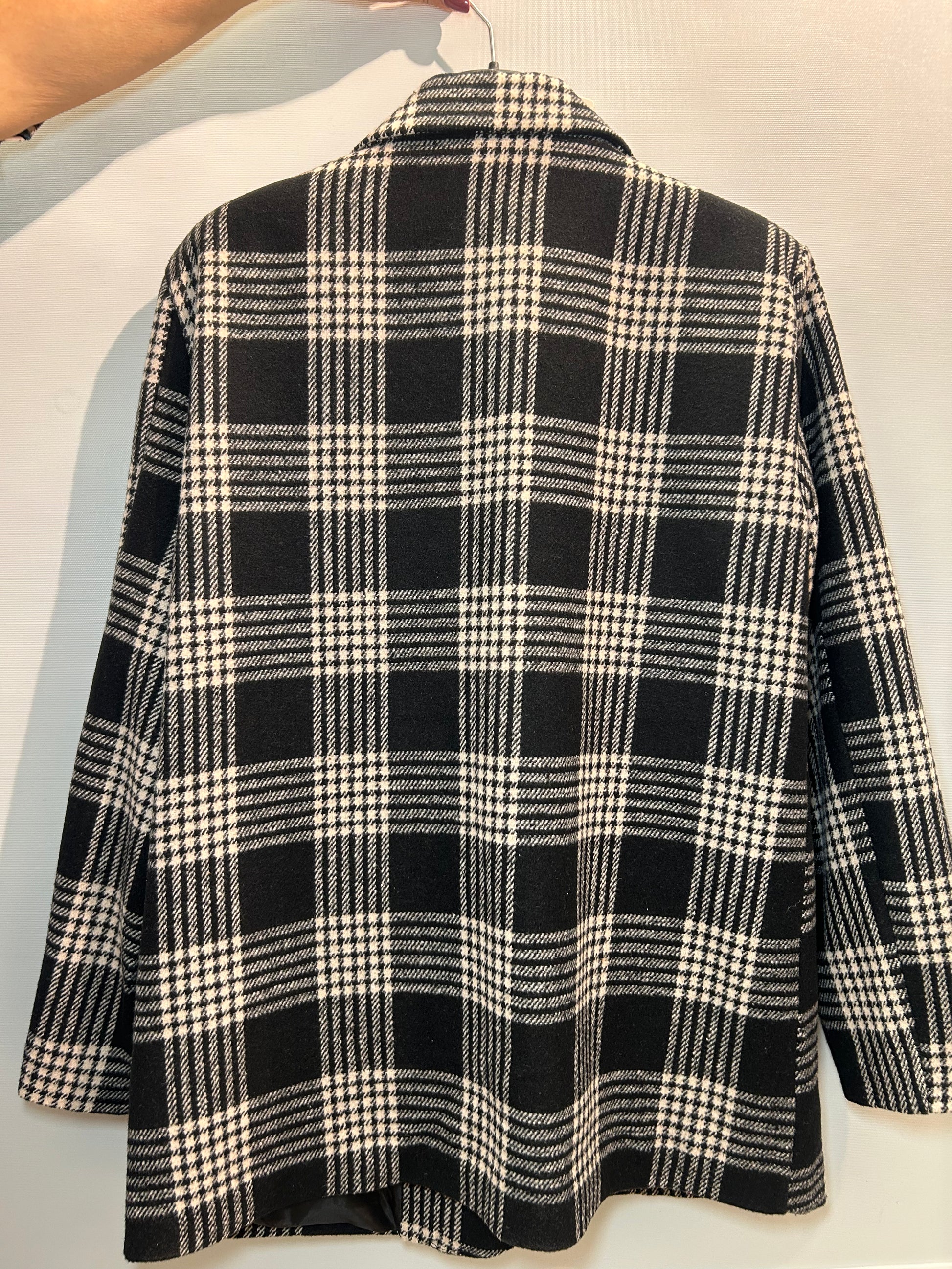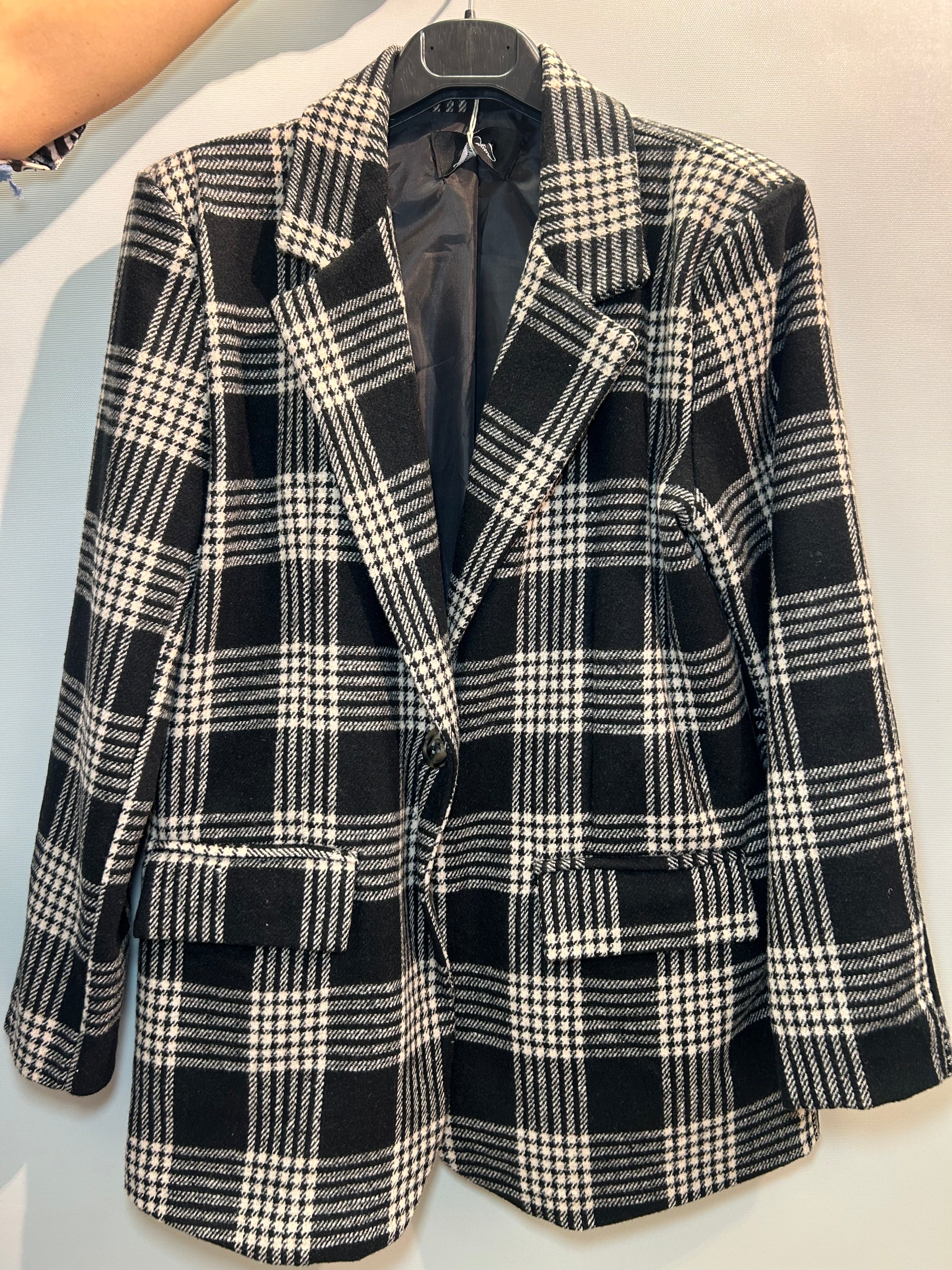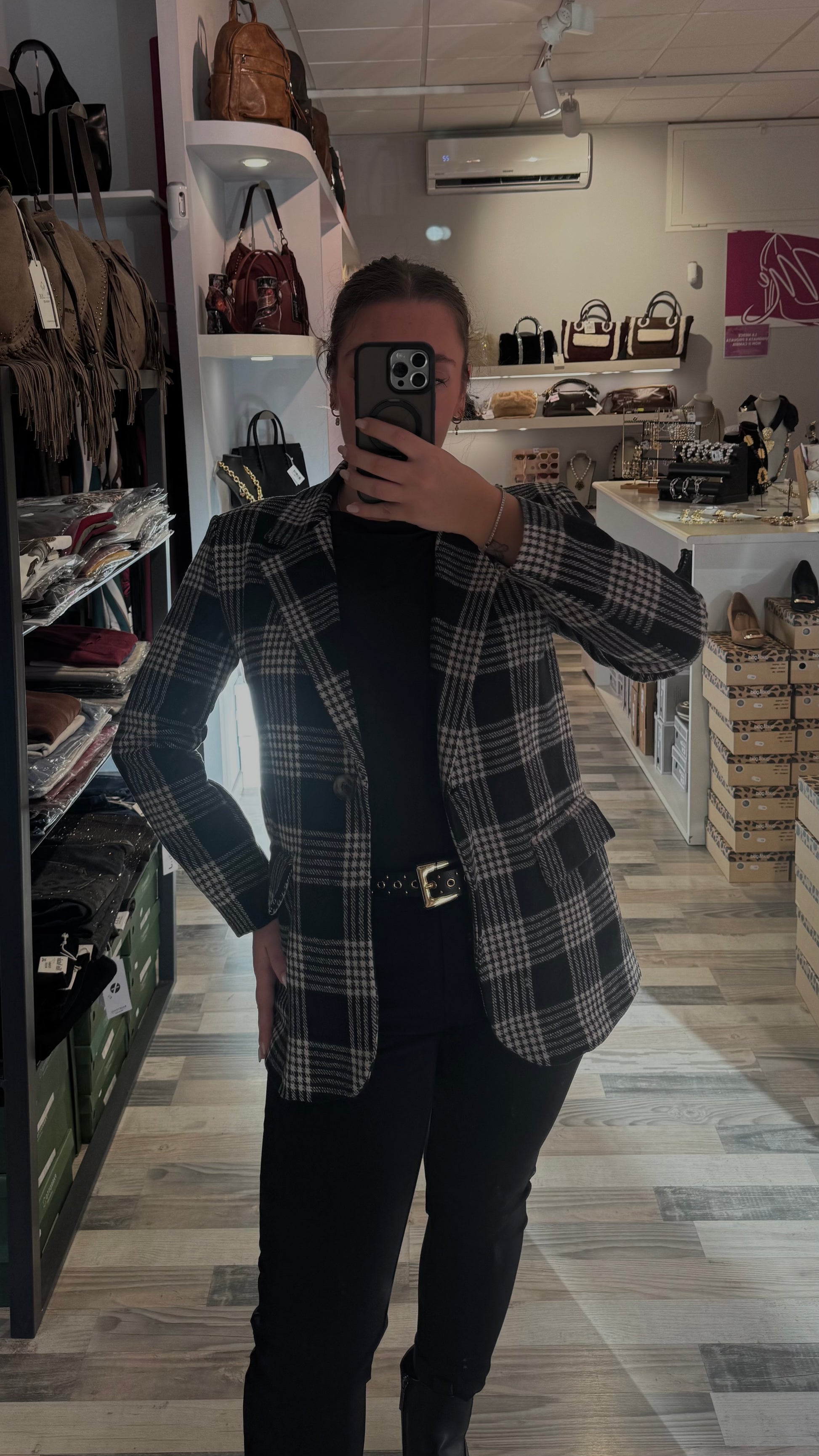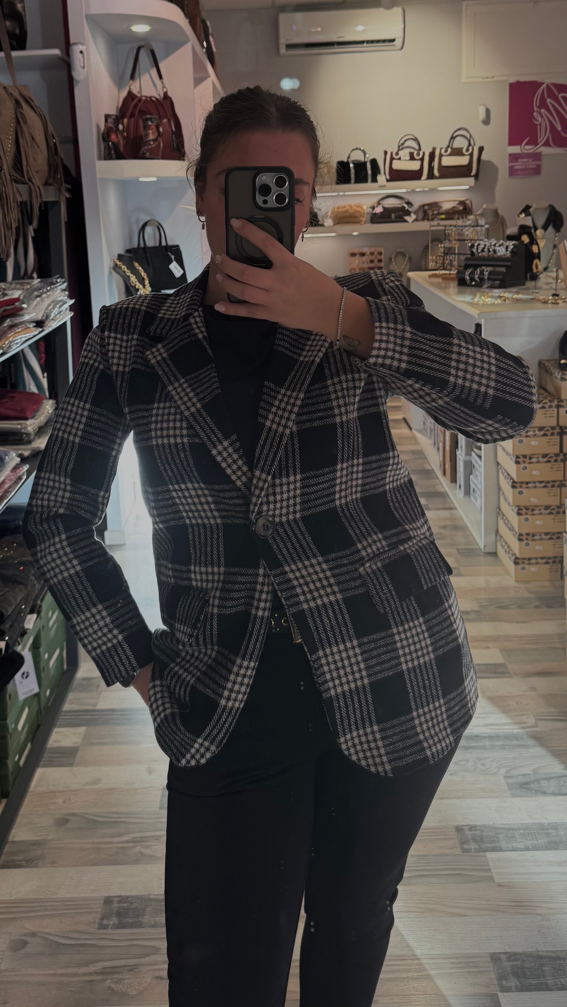 Giacca strutturata color nero/grigio con spalle imbottite, foderata all'interno