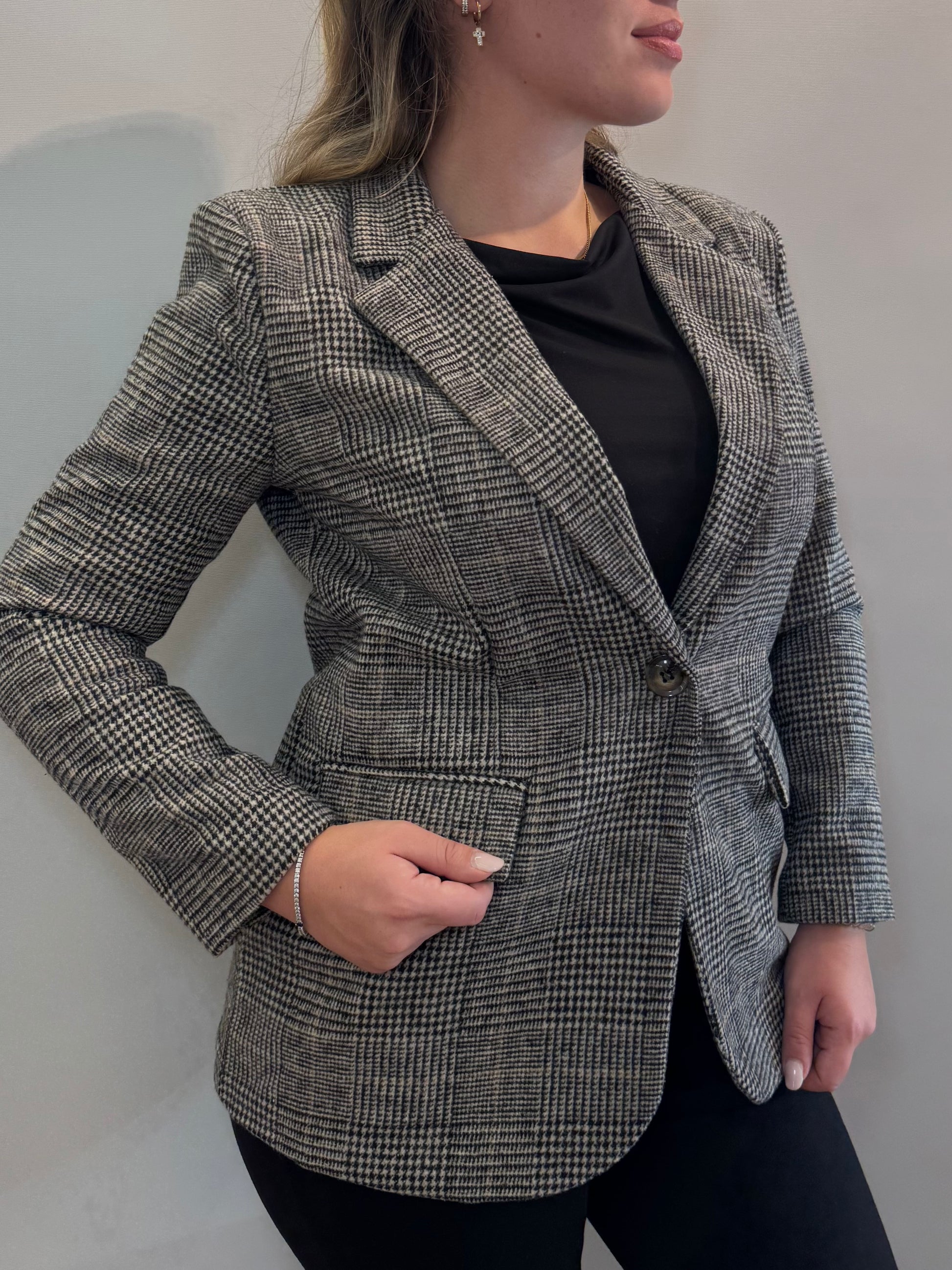 Giacca strutturata con spalle imbottite color Grigio, foderata all'interno