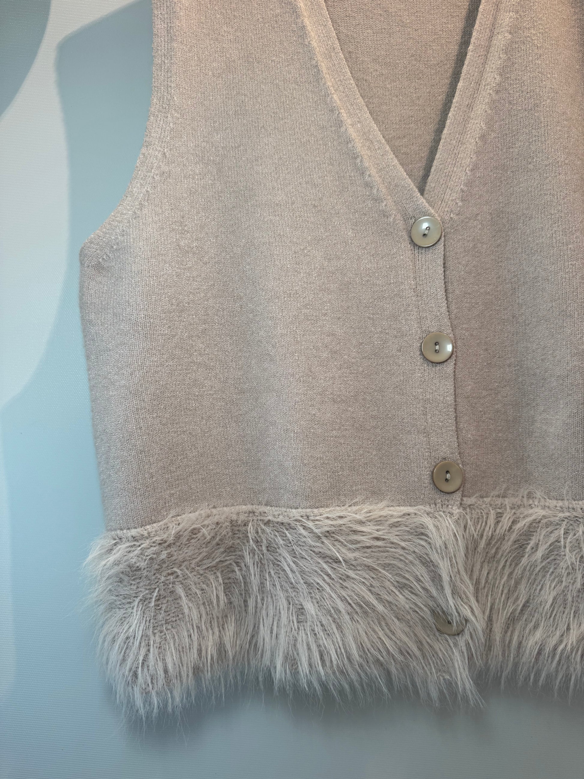 Gilet color Beige con dettaglio pelliccia in vita e bottoni