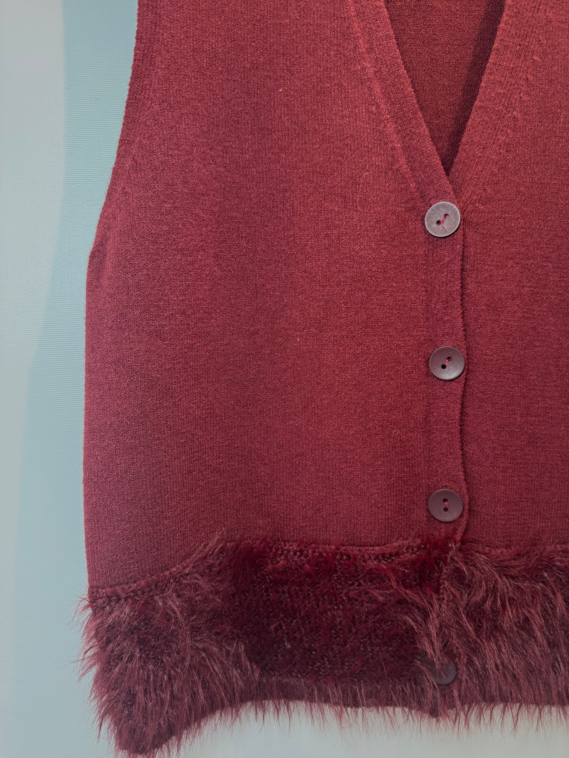 Gilet color Bordeaux con dettaglio pelliccia in vita e bottoni