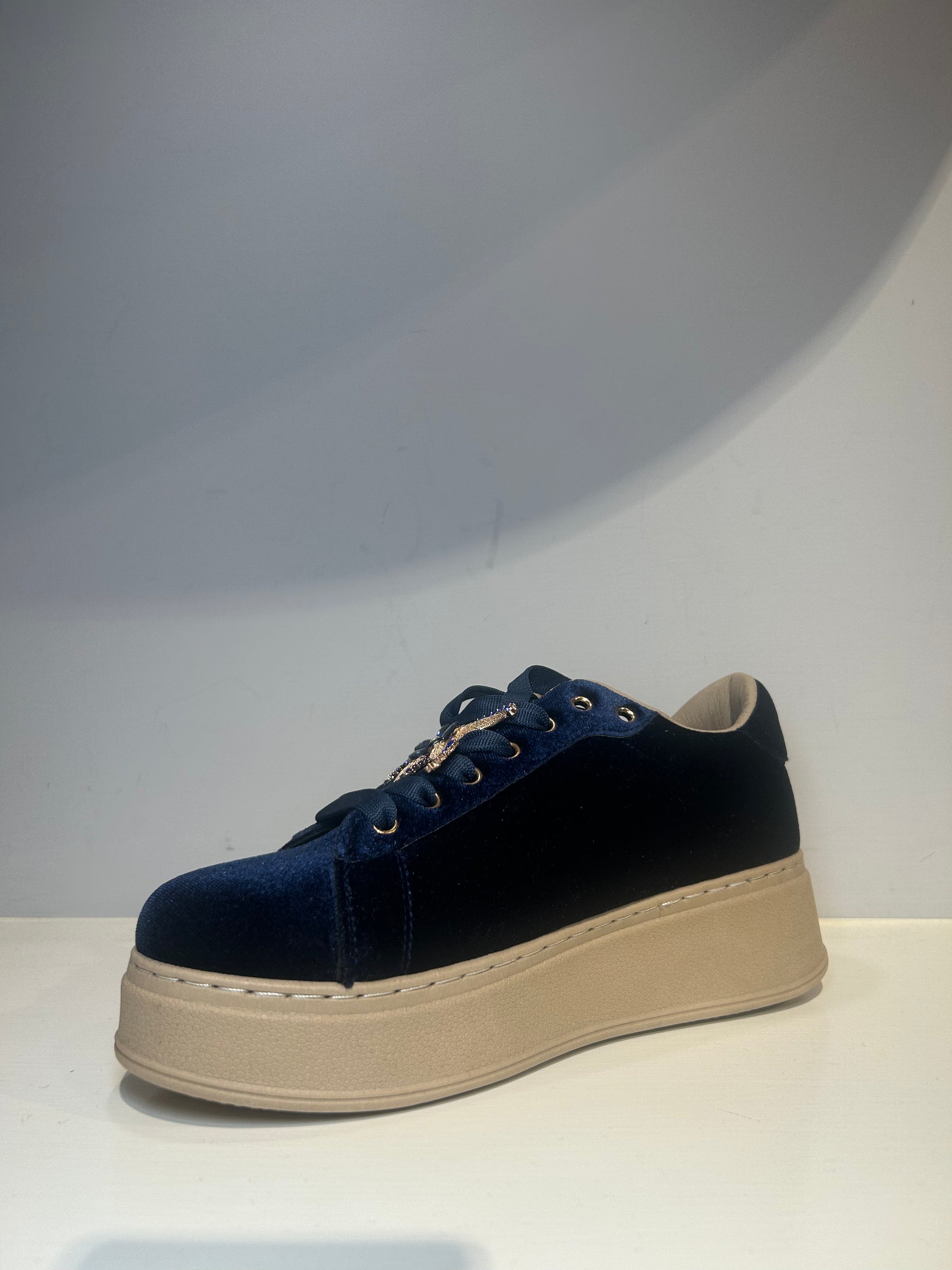 Scarpa sportiva color Blu in velluto con gioiello sui lacci