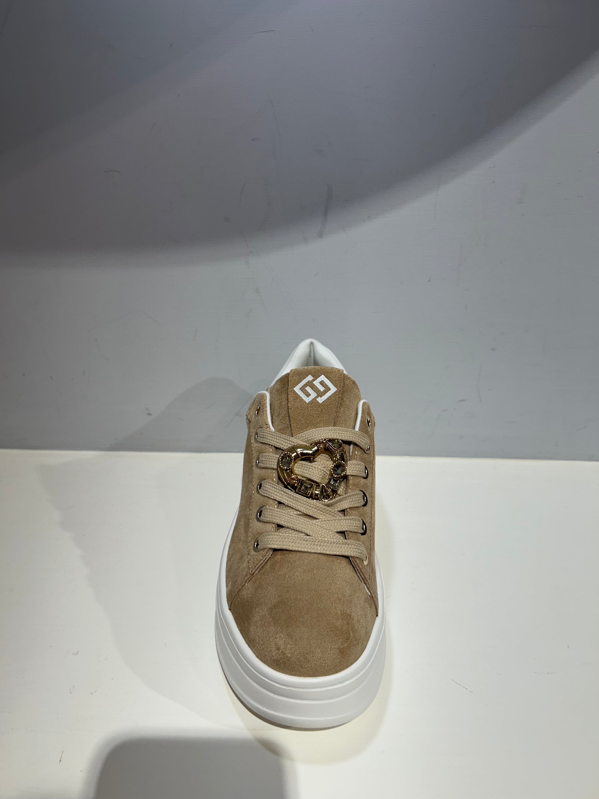 Scarpe sportive Gold&Gold color Khaki in camoscio con gioiello sui lacci